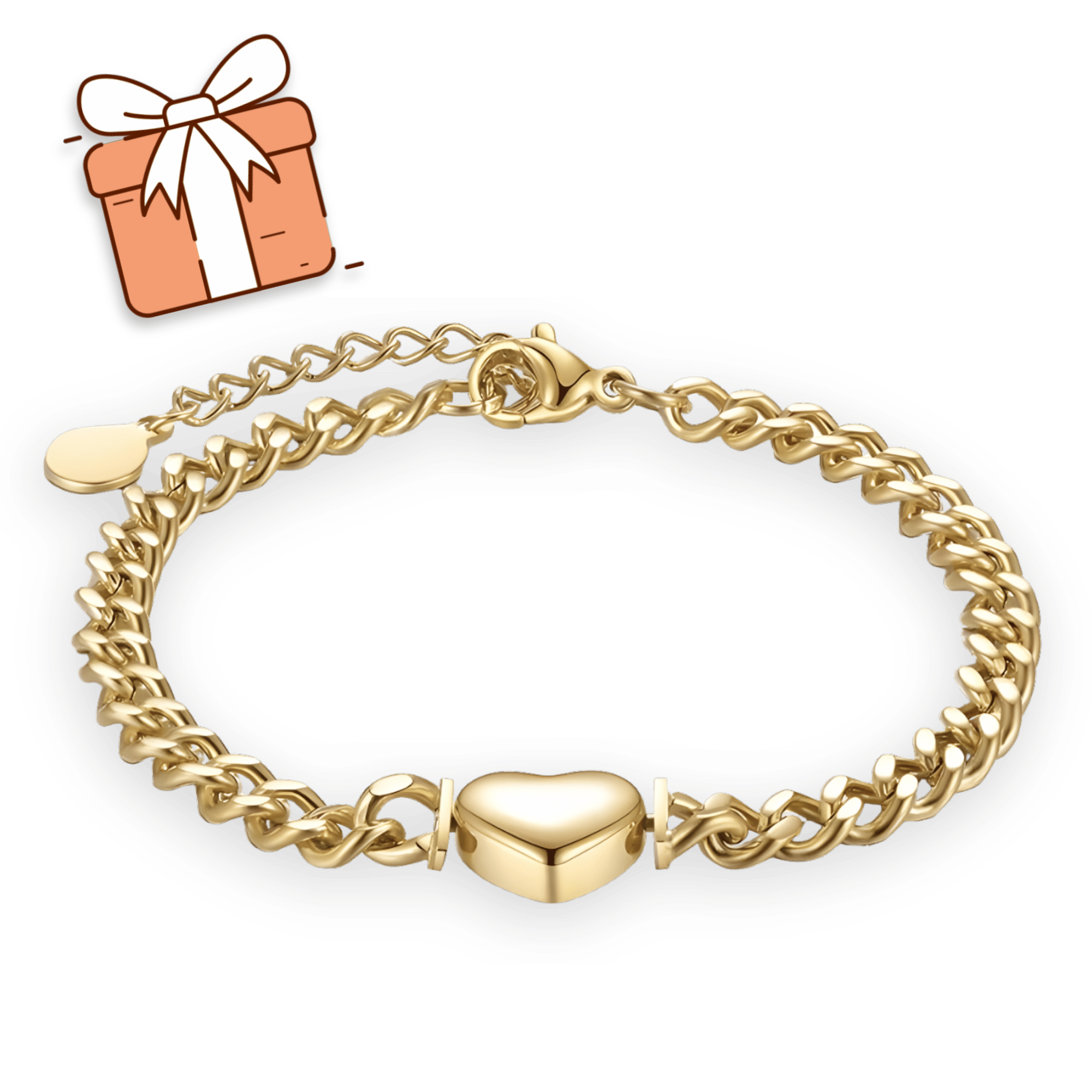 This gold bracelet for women perfectly balances boldness with romance, making it the ideal heart bracelet for the woman who isn't afraid to wear her emotions beautifully. The Cuban chain construction adds contemporary edge while the heart charm maintains timeless femininity.